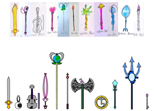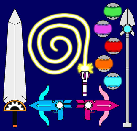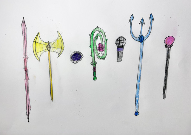 This are Music Warrior's MusiWeapons. (If you're wondering "What does a trident have to do with music?", I chose it so King Trollex can summon a DJ set out of Techno energy to transform and attack)Pop Warrior Queen Poppy - Pop Microphone