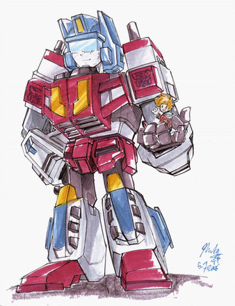 Here is the traditional rendering of my Thank You picture for for letting me borrow some awesome Transformers comic books as well as sending me Dark of the Moon Shockwave and some other nice little gifts that made me squee with joy and dance around the house.So here is part one, done with Copic markers, with just a teeny bit of photoshop editing so their eye's were brighter and glowed more.