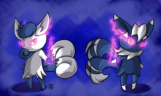 niiiiiiice!!!!!! I love those two very much! (but I guess I like the boy version better cause the girl version of meowstic has these droopy evil eyes, and the boy looks derp like Espurr who looks like it has seen something that shouldn't have been seen)