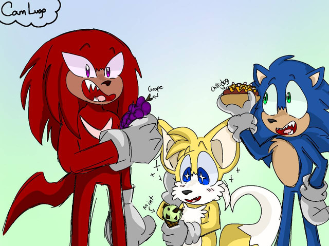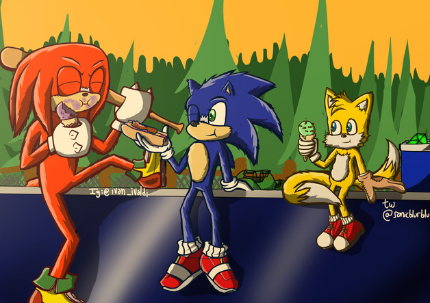 Miles and Tails watching Sonic and Chip Chow Down, I guess this is what it looks like from an outsider's perspective when eating so much food in UnleashedArtist is twitter.com/Fakerbingus