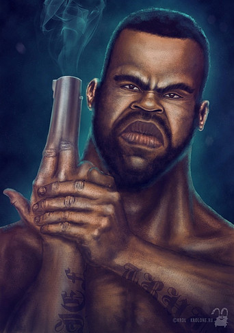 #actor #happy #krita #practice #ready #series #shotgun #smile #smirk #weapon #thewire #brickwall #digitalpainting #gangster