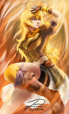 very cool piece. i like this special way of drawing fire. plus she look badass here. i like Yang character.