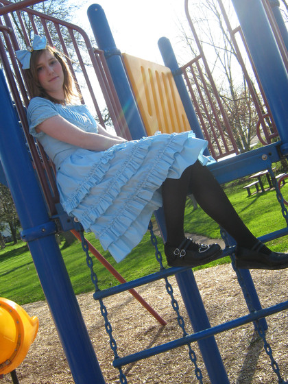 This is my Autumn Roses JSK set. The jumperskirt is bustle-backed so that the underskirt shows. The underskirt matches little blue rosebuds in the print of the JSK.Photographer: chilaou