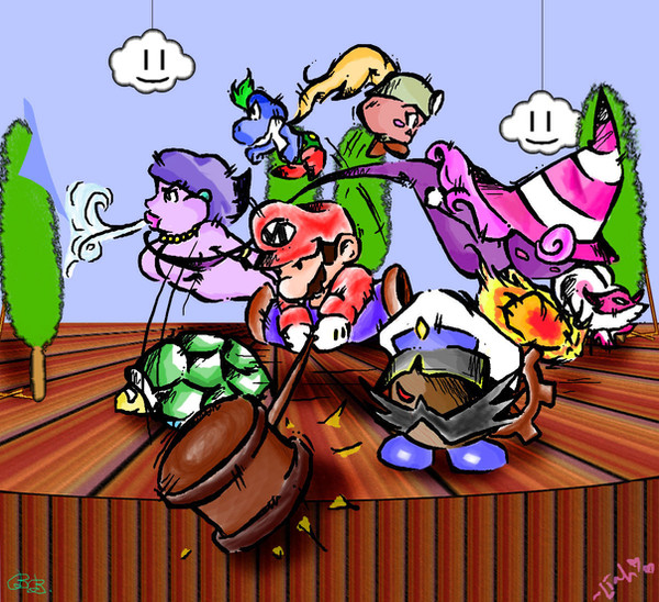 This is so cool! Paper Mario is such an awesome series, and I'm so annoyed at the direction it's been taken so far... especially since they've ditched the one aspect of the P.M. games that I really loved and that this piece showcases; the partners. They're so much fun and were very well implemented! Each one plays differently, they all have different powers for the overworld, they were all unique, good god I could rant on and on about this for ages... ^_^