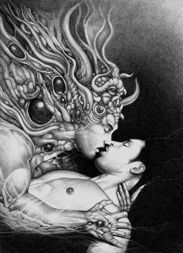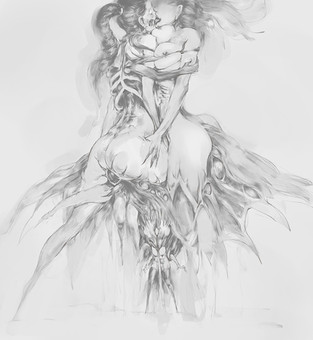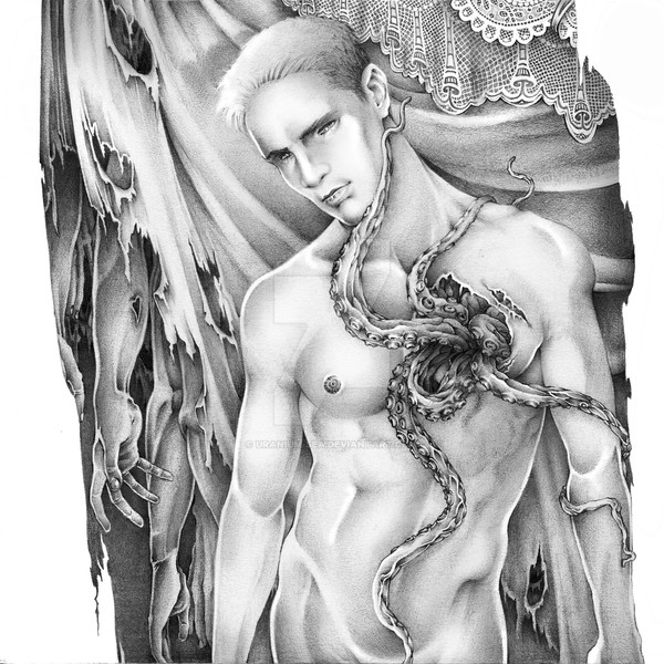 HEEEEEEEEEEEEEEEEEEEEEEEEE SUCH AN AMAZING COMPOSITION AND LOOK. It just makes some people appalled by how pure and then how gross the body is. And then you see the skulls near the boy, and you think "He is not as innocent as we think."
