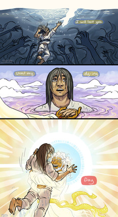 I'm just on that point,n so I don't no so much things about the following (except some interesting scenes ^^). Just, I think I must to tell you this : I love your representation of Mictlantecuhtli. It's a bit rare to find him in other way than a beautiful decaying skeleton. And ... how to say this ... it's exactly my kind of man. So, I'm doubly happy.