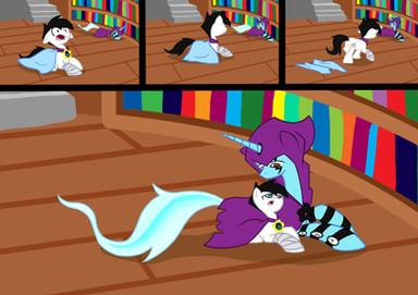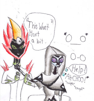 well spook thought it would be funny to scare crystal, however this results in her shooting sveral spikes (as she has little control of her powers) one of these skims by pyro and blur catching them by surprise and causing pyro to drop his toy.Spook's gonna get in so much trouble