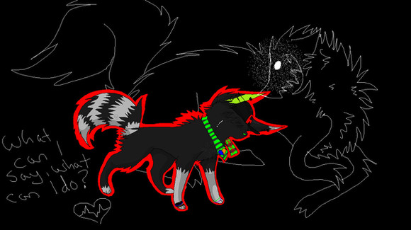 ...Yeah. I'm not denying it.A recreation of an old drawing I did. This one I actually like better and it took half the time to make. I made it in paint, I know. But come on. It's pretty cute, right?