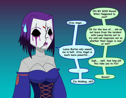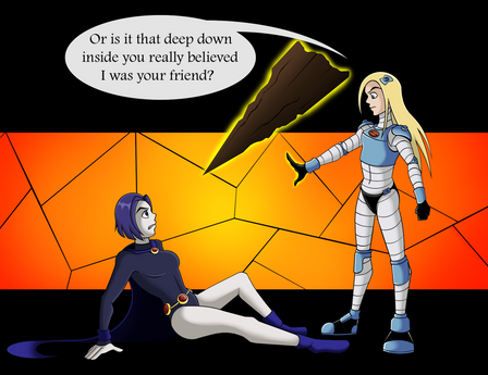 I know, I know, but I had to get one more confrontation between these two out of my system. Can you really blame me when it's one of the best fights the show had to offer?This is an alternate take based on the ending of their battle in Aftershock, specifically Terra's taunting to get a rise out of Raven. You know, before the fireworks. Kept the dialogue unchanged from the episode, but mixed up their positions for a slightly more dramatic scene.
