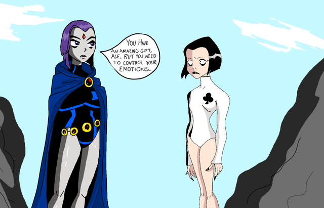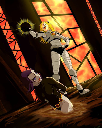 I know, I know, but I had to get one more confrontation between these two out of my system. Can you really blame me when it's one of the best fights the show had to offer?Guess you could call this an alternate take based on the ending of their battle in Aftershock, specifically Terra's taunting to get a rise out of Raven. You know, before the fireworks. Kept the dialogue unchanged from the episode, but mixed up their positions for a slightly more dramatic scene.