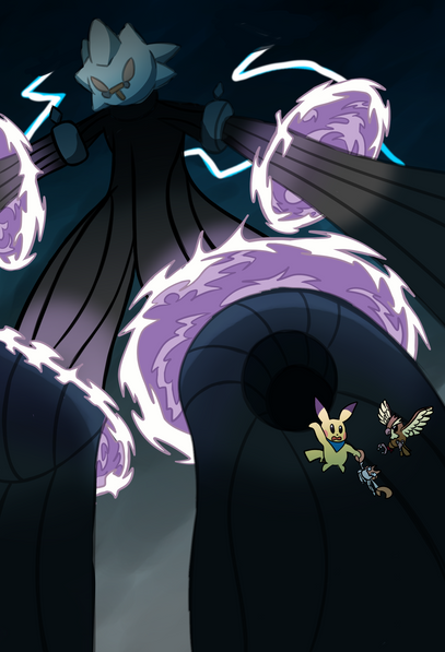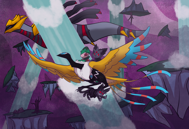 this is a Pokemon Super Mystery Dungeon painting thing. as much as i love PSMD's story for what it is, i keep imagining what it would be like if Yveltal was the true final boss instead of Dark Matter.