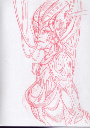 I like this one. But...I think it should be inked and coloured!! (mainly because I would love to see this coloured..it's really cool) Great job!!