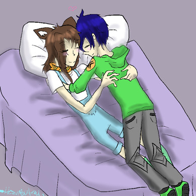 here where we have neko sleeping peacfully on her lap like a kitty XD and haru brushing his head as he slep XD