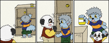 Unfortunately, I'm Not Able To Full View It Considering The Fact That The Piece Itself Doesn't Show. Even So, I'll Comment On What I'm Able To See At The Moment. First Of All, My Favorite Panels Would Be The First And Fourth Panel. I Have Absolutely No Idea Why, But I Believe You're Being Shown The Cutest Within Those. Then Again, How Could I Ever Resist Both My Bebe's Smiling Face And Sucking Happily On A Can Of Easy Cheese? Even Though I Find The Way You Eat Easy Cheese Rather Weird, There's No Way I Could Ever Dislike You Sucking At The Can, Most Likely Since You Look As If You're Sucking On A Bottle In The First Place, But That's Beside The Point.