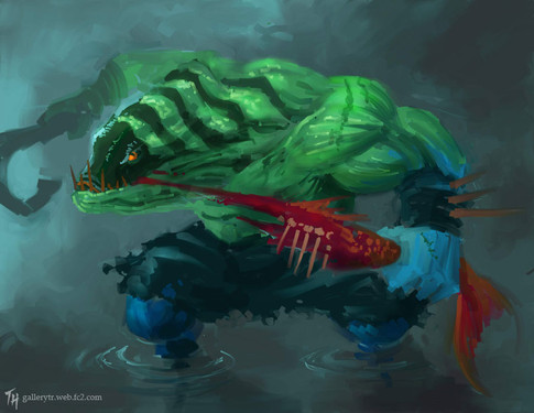 The background, while simple, is still quite effective, and the semi-obscurity of the behemoth gives both a foreboding and daunting vibe to it.