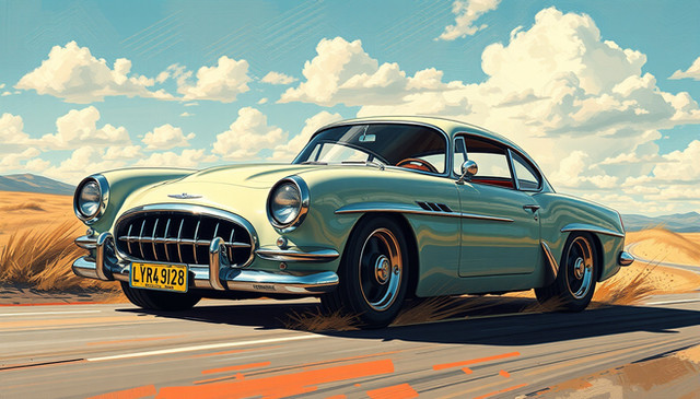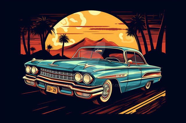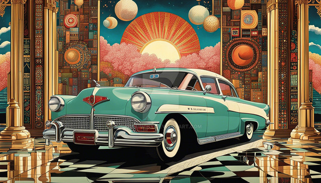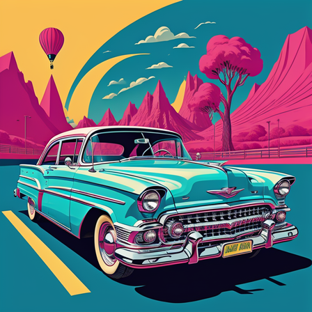 #digitalart #digitalpainting #car #cartoon #vintage #vehicle #wallpaper #popart #chromatic #clouds #colors #desert #retro #road #sunset #surreal