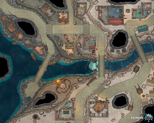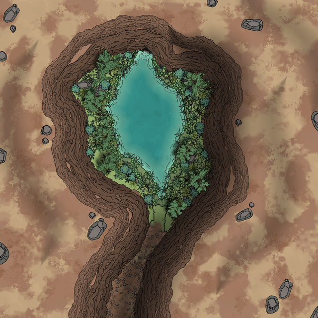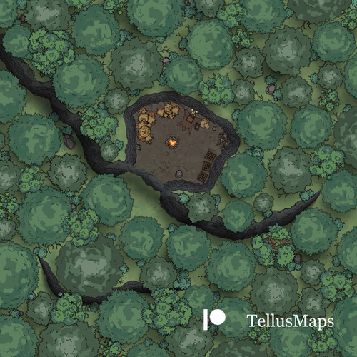This would be a suitable quest site for a low level party, with potential for either diplomatic or combat resolution. Full size PNG and VTT files are available on my patreon in grid/gridless variants without watermark.