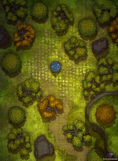 The forest is steeped in magic, soaked into the roots of the trees. At the heart of the forest is an ancient ruin - a ritual circle of unknown purpose. Was the circle built to take advantage of innate magical energy in the landscape, or is the magic permeating the forest crucial to the circle's operation? Perhaps it doesn't matter. What does matter though, is someone has learned how to activate the ruins in pursuit of their own ambitions.This 20x20 battlemap is available in full size on my Patreon in day/night + grid/gridless variants without watermark.