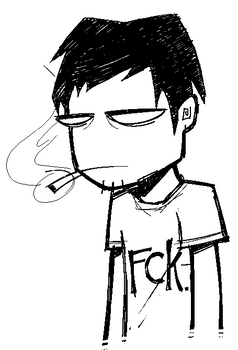 I've been using this for quite a while, and I love it. It's basically an edited version of one of the Problem Sleuth panels that utilizes a heavy shadowing effect onto the drawing of Andrew Hussie, indicating that he's just a shell of his former self as of now and can't recover.I've also made 2 other alternate versions of this specific drawing that traces pictures of Andrew Hussie as well.
