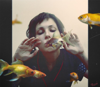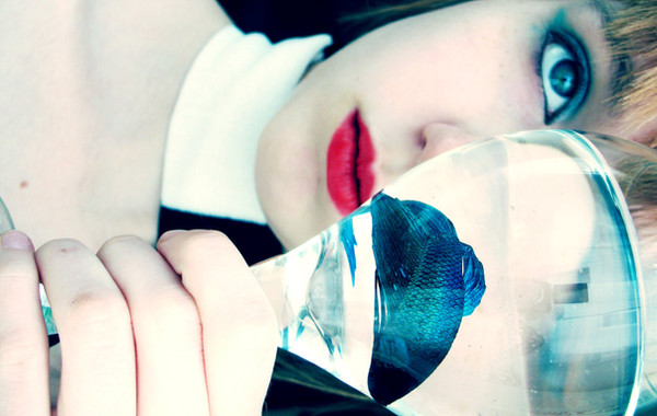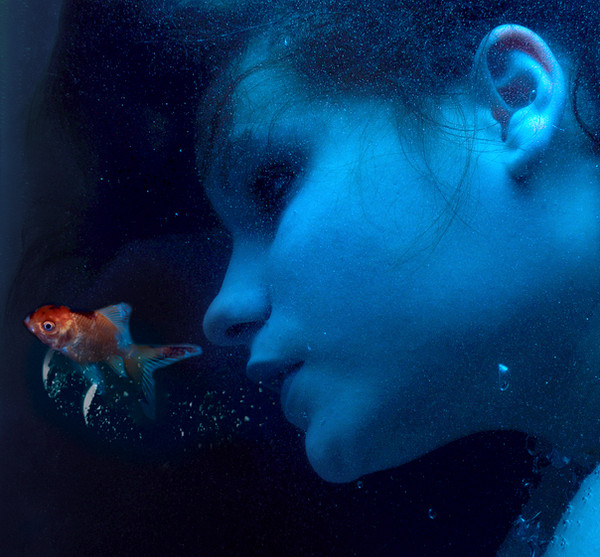But I love this. It says a lot. The carefree look as she drinks the fish's water. Says a lot about the human race and what we're doing to the environment. I don't know if that's what you intended, but that's what I see.