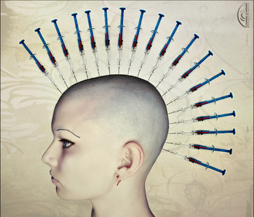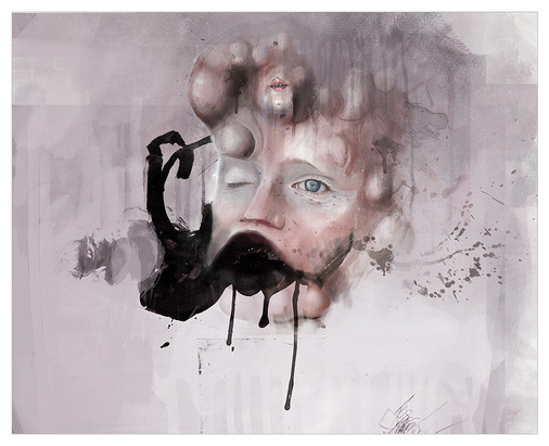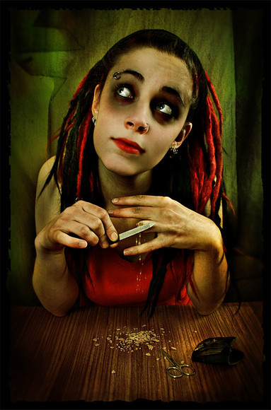 She looks so relaxed, here. The hands colored red are an opposite for me. Nice combination of cause and effect/action and reaction.