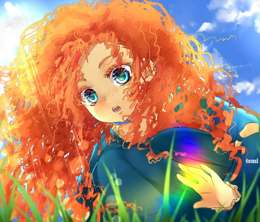 I LOVE the colors in this, Temi-chan!<33 I mean, you've got all of the colors here perfect, and I've always loved how you've done hair (and drawn Merida!) haha. The flowers look fantastic, and the perspective is great too! I love their expressions as well >.< So much cuteness and fun happening!<3 haha