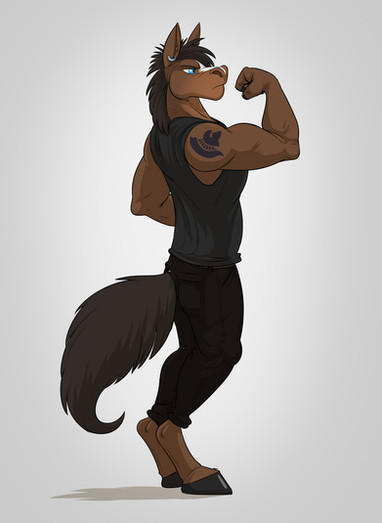 Commission for ! This guy is becoming a logo/mascot for a car club in Greece. I’ll be doing another version for them this weekend! This is also my first time getting commissioned for a horse character. :3