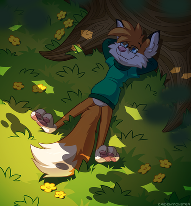 #anthro #anthropomorphic #australian #cel #colored #commission #cuddle #digital #down #furry #grass #happy #inked #jordan #laying #shaded #shading #shadow #shepherd #stratus #summer #wolf #art #trainzguy261