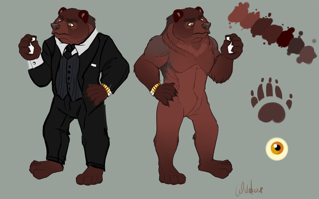#anthro #anthropomorphic #bear #brown #brownbear #cel #colored #commission #detective #digital #inked #rake #reference #shaded #sheet #vincent #art #theblackscribe