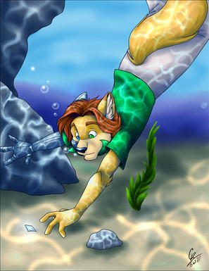I have a drawing (not on dA) similar to this (though yours is much MUCH better), except my otter character is well known among his people as a shell diver. I like this - I think I need to fave.