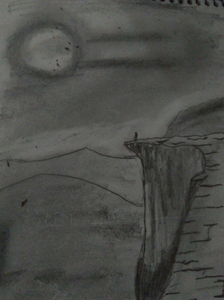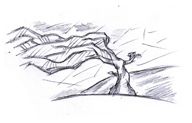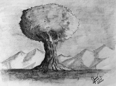 I'm not sure what inspired this. I just wanted to draw an old, beaten down tree.This was my first drawing ever that I used a blending stick, which I used for the tree and the backround mountains.