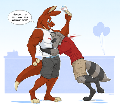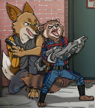 #anthro #anthropomorphic #colored #comic #digital #kangaroo #laser #raccoon #roo #shaded #sketch #tag #art