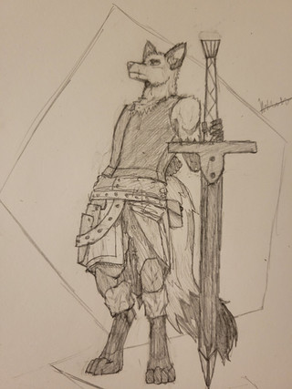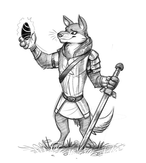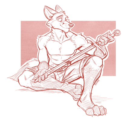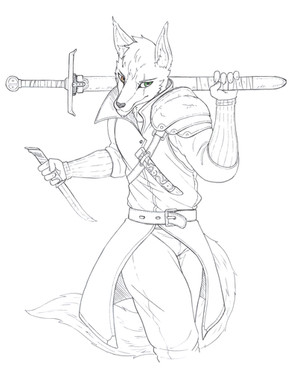 #anthro #anthropomorphic #canid #canine #crosshatch #crosshatching #detailed #fox #markus #shaded #shading #sketch #sword #weapon