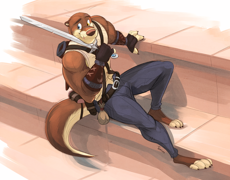 There's one regal-looking otter! Love the outfit! Seems he's well-armed, too!