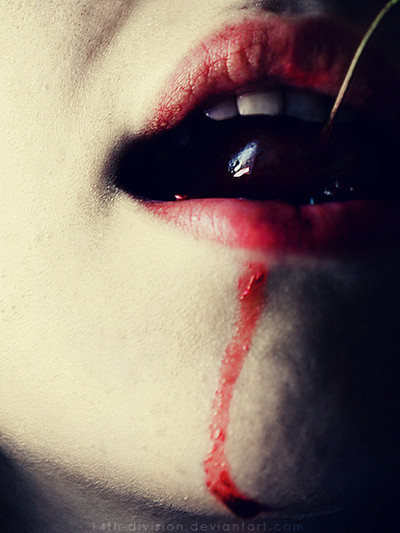 Maybe I'm naive, but I haven't seen anything quite like this before. Amazing, entertaining, chilling. Kudos to both you and *blacklady666 for these amazing shots and putting up with another person's blood in their mouth