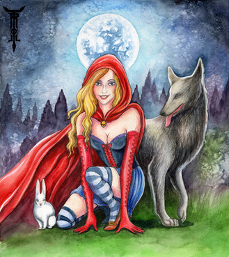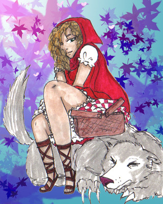 Awesome work here hon!!! I'm in love with this piece. I really adore how you made Red look both innocent and seductive at the same time. Your take on the wolf is really great too. It's refreshing that you didn't go with the classic look, where the wolf is off in the shadows with teeth bared and all that. It looks more like he's protective instead of threatening! Very very nice!