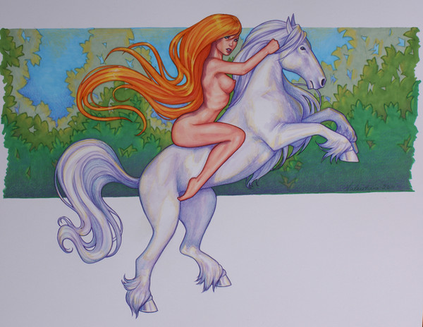 I wanted the wolf to be the one that was seduced and now he is her prey and protector. Innocence lost and all that . I was really happy with this, particularly the wolf as I wanted him to have a sort of timidness about him.