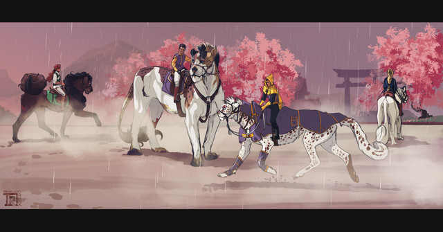 This is a majestic piece, through and through; the essences represented by horse, rider and their animal companions are so perfectly portrayed, unique in their own ways - yet tied together so beautifully and in such harmony. It also makes me very happy to see a Tibetan Mastiff aiding in the representation of will power, spirit and fire - such an incredible breed of dog, I cannot think of a better choice! This artwork is breathtaking in every way, job well done.