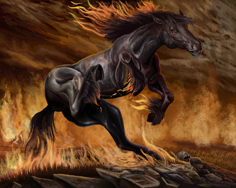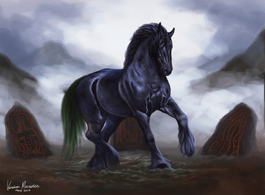 #field #ghost #horse #magic #midnight #runes #spell #stallion #drakehest
