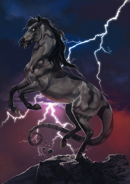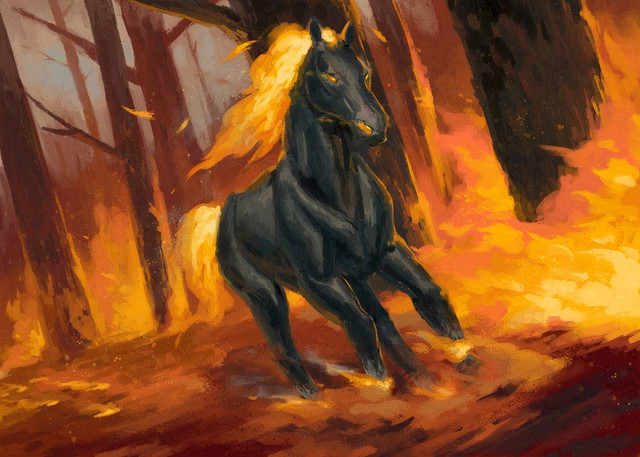 At first, I thought this was the horse Black Beauty from The Witcher 3 until I looked and saw it was a Drakehest! :' > It's such a stunning image. :>