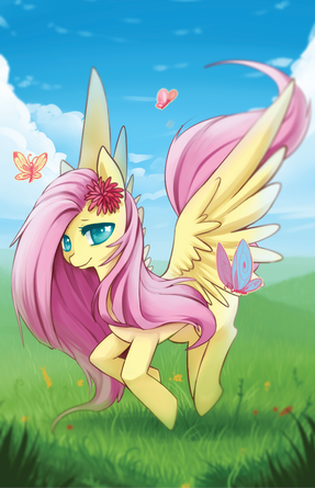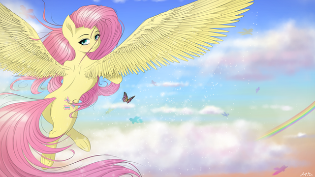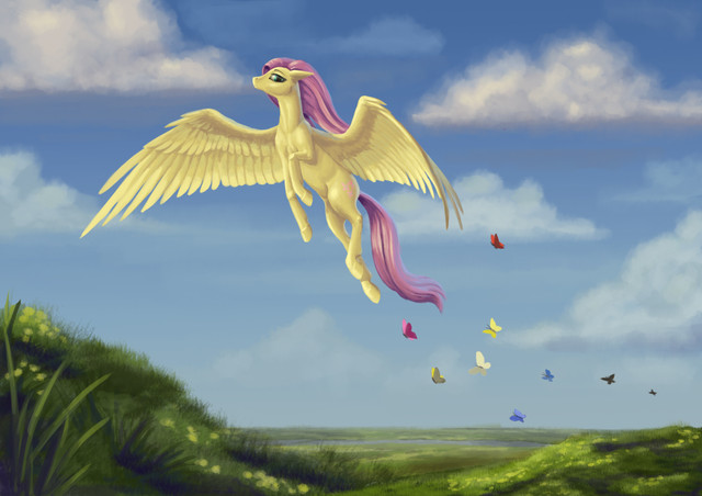 #flying #mlp #butterflies #clouds #flowerfield #flowers #fluttershy #mylittlepony #pegasus #sunnyday #friendshipismagic