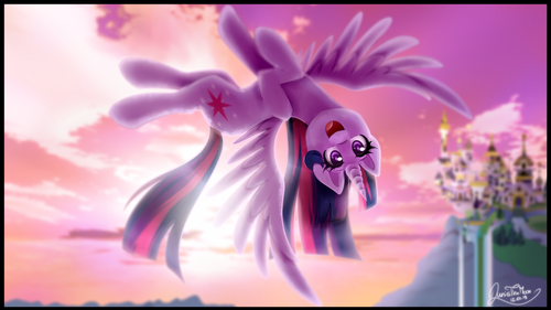 So pretty! I love what you did with the lighting and the little detail on the sky with the cutiemark formations~ Very nice!