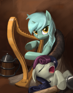 #lyra #oc #friendship_is_magic #pinkie_pie #beards #commission #gypsy #harp #music #tambourine #wagon #my_little_pony #lyraheartstrings #fire