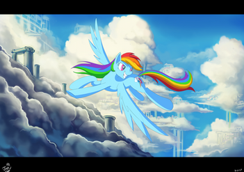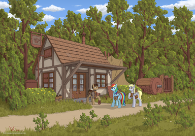 Oh, this is beautiful, great work mixing Ponyville with a more realistic, and contemporary town. There's alot of nice things to look at, and I especially love the cloud details, and everything.