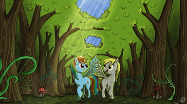 Nice little derpy enjoying her time, and that background is wonderful. That's a ton of trees in ponyville, I wonder