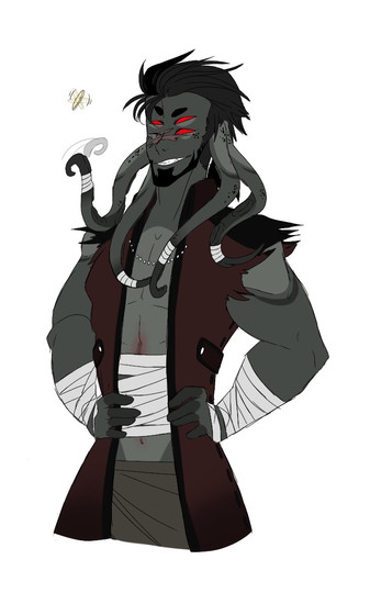 He is a giant fucking idiot because his magic wasted away his brain and made him insane. (Also gave him sport monstrous qualities such as his sharp teeth, pointed ears, white eyes, and midnight black skin. Yes he used to be human before.)