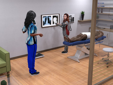 "I just wanted to stop by and see how your adjusting to your new life Doctor." Jennifer says.With a big smile; Dr. McCormick replies; "Everything's pretty good to be honest. The clinic keeps me fairly busy. Busy enough that I hired an assistant, Kimmy. And now that I'm an on call emergency doctor I'm just a bit busier."