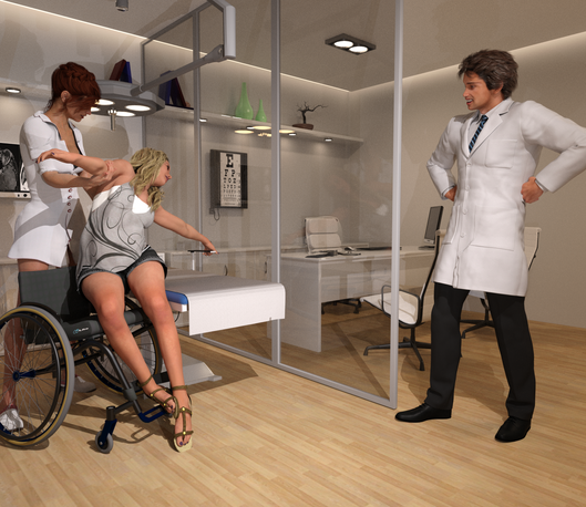 "So, Celine. I guess you decided to take me up on my guarantee offer?" Dr. McCormick asks as he rushes into the exam room with a syringe. Not waiting for a reply; "Well let's get started. Take off your shirt and show me what you want done to them this time." he says, pointing at her chest."Woah Doc, the 'twins' are fine." Celine assures him; "I came to introduce you to your new assistant." she tells him as she points to Kimmy.