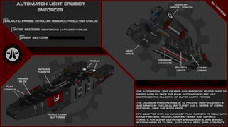 Sentinel Light Cruiser serves as a small display of power as well policing sectors of space that the Dominion controlWD Fight "Watcher Drone" (Unman Drones that assets ground teams of a policed world or warzone for quick air support within a zone)