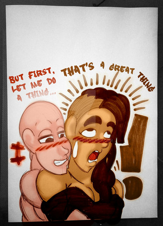 wanted to draw me and the bfs ...episode this morning i guess you can call it? it was too funny so i had to draw it xDmoral of the story , after showering ,dont put on cutesy things like santa hats in undies or there will be consequences! haha! enjoy ;w ;